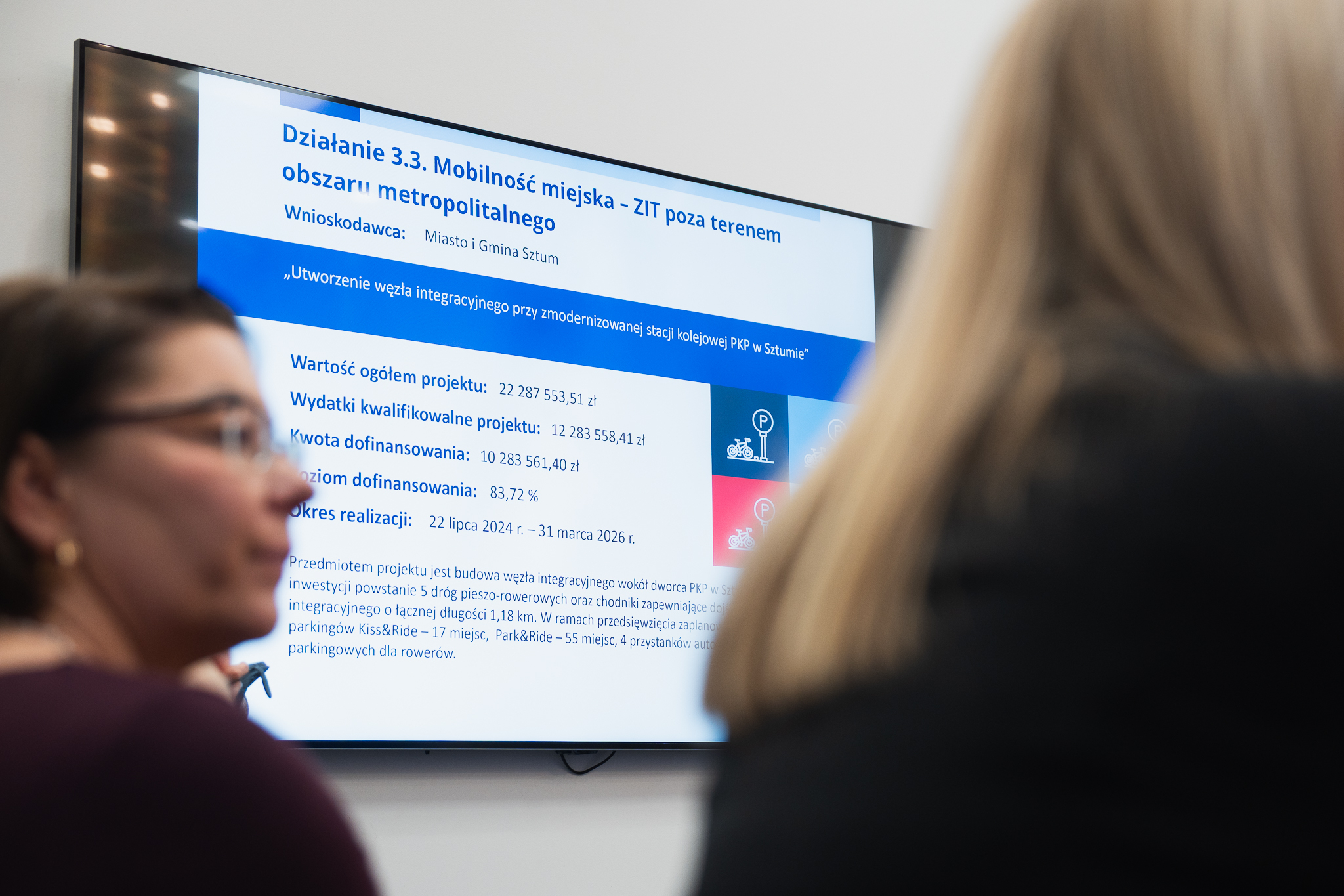 Ponad 10,2 mln zł pochodzących z funduszy unijnych otrzyma Miasto i Gmina Sztum na realizację projektu pt. „Utworzenie węzła integracyjnego przy zmodernizowanej stacji kolejowej PKP w Sztumie”. Przedmiotem projektu jest budowa węzła integracyjnego wokół dworca PKP w Sztumie wraz z poprawą funkcjonalności i bezpieczeństwa układu komunikacyjnego obsługującego pieszych, rowerzystów i transport publiczny. W ramach inwestycji powstanie przede wszystkim ponad kilometr dróg pieszo-rowerowych oraz chodniki zapewniające dojście i dojazd do węzła integracyjnego. W ramach przedsięwzięcia zaplanowano też budowę parkingu kiss & ride na 17 miejsc przy ul. Kościuszki i parkingu park & ride na 55 miejsc przy ul. Żeromskiego, budowę 4 przystanków autobusowych przy ul. Kościuszki i 34 miejsca parkingowe dla rowerów. Projekt realizowany będzie do końca marca 2026 r.