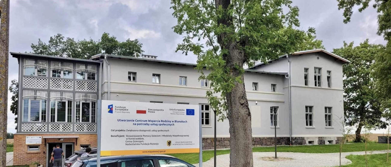 Powstałe w 2023 r. w Gminie Dzierzgoń Centrum Wsparcia Rodziny w Blunakach staje się symbolem nowoczesnych usług społecznych w regionie. Inwestycja, zrealizowana dzięki środkom unijnym, nie tylko odpowiada na realne potrzeby lokalnej społeczności, ale została także uznana za jedną z najlepszych renowacji w Polsce, zdobywając główną nagrodę w konkursie RenOwacja 2026 oraz wyróżnienie Ministra Rozwoju i Technologii.
